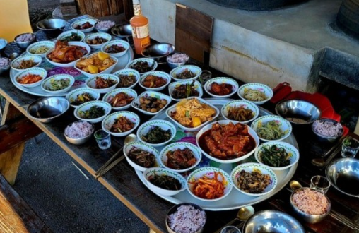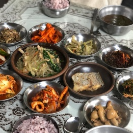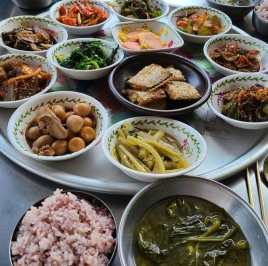 이 식당은 돼지 부속 구이와 같은 다른 메뉴도 판매하긴 하지만, 주된 메뉴는 바로 '백반'이며, 이 백반은 제철 나물이나 동네 이웃이 직접 농사를 지어 정성스레 키운 재료들로 만든 건강하고 맛있는 열댓 가지의 반찬들로 구성되어 있습니다.