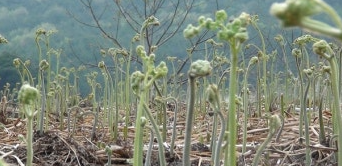 첫해에 난 고사리 줄기는 수확하지 않고 1.5m 높이까지 자라게 한 후 말라 죽게 둔다. 이 묵은 대가 이듬해 나는 고사리에 그늘을 만들어주는 역할을 하는 것! 음지에서 자란 고사리는 두께가 얇지만, 수확량이 많다는 장점이 있다는데.
