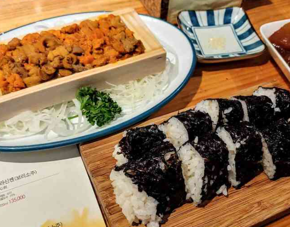 메뉴는 다양하고 독특합니다. 두릅과 꽃게알을 활용한 초밥부터, 직접 숙성시킨 고추장으로 버무린 가오리까지, 제철 재료를 활용한 창의적인 요리가 가득합니다. 심지어 명이나물을 쌈 채소로 사용하거나, 단 세 가지 재료만으로 완성하는 소금김밥까지, 이곳의 메뉴는 재료 본연의 맛을 최대한 살리는 것에 중점을 둡니다. 특히, 소금김밥에 사용되는 소금과 김은 지역 특산품으로, 최상의 맛을 구현합니다.