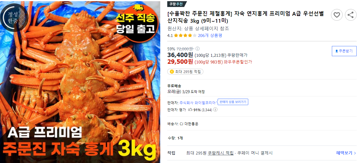 6시내고향 주문진 홍게 택배 주문 자세한 정보 확인 하시기 바랍니다