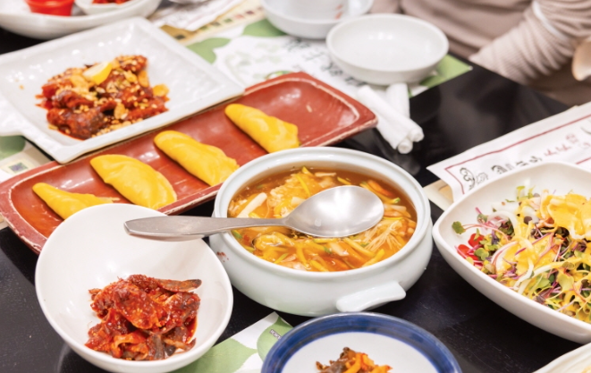 여기 약선 한정식으로 정말 유명한 식당을 찾아가는데요 이 한정식 맛집은 황기, 당귀, 오가피, 뽕잎과 같은 건강에 좋은 재료들을 사용하여 요리합니다. 황기는 보약의 우두머리로 알려져 있으며, 당귀는 피를 생성하는 데 도움을 줍니다. 오가피는 해독 작용에 탁월하고, 단백질이 풍부한 뽕잎도 사용됩니다. 이러한 재료들을 활용해 만든 음식은 건강뿐만 아니라 시각적으로도 매우 정성스럽고 아름다워 많은 사랑을 받고 있습니다.