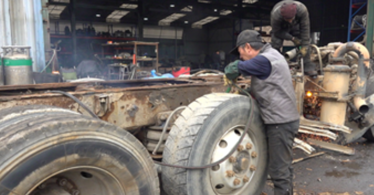 폐차 과정은 매우 복잡합니다. 특히 시동이 걸리지 않는 대형 트럭은 지게차로만 이동이 가능하며, 이는 노련한 숙련 기술을 필요로 합니다. 폐차 과정의 첫 단계는 차량에 남아 있는 오일을 제거하는 것입니다. 이후에는 산소 용접기를 이용해 부품을 세심하게 해체하는 본격적인 작업에 돌입합니다. 대형차의 경우, 버릴 것 없이 95% 이상의 부품이 재활용되기 때문에 부품들이 손상되지 않도록 세밀하고 정교한 작업이 중요합니다.