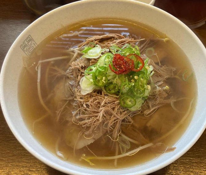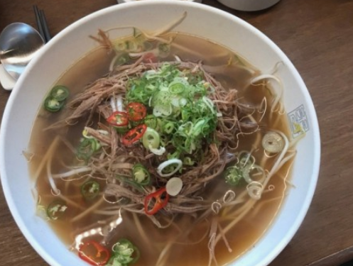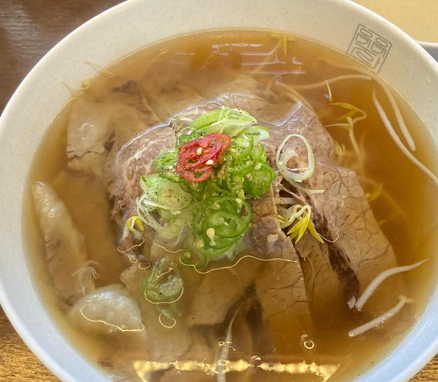음식은 넉넉한 그릇에 담긴 따끈한 쌀국수로 제공되며, 국물의 맛은 묵직하지도, 가볍지도 않은 완벽한 균형을 자랑합니다. 먹고 난 후에는 무료로 추가 면사리를 제공받을 수 있으며, 면 위에는 고기 고명과 파가 아낌없이 올라가 있습니다. 가격 대비 높은 품질로, 이곳의 합리성과 정성을 한층 느낄 수 있습니다.